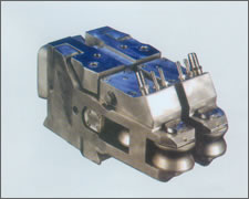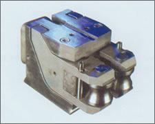 四导辊式进口导卫、设计结构简单。成本低且易于维修,左右辊的中心距既可利用中间蜗轮同步对称调节。又可单独调节,易于准确对正轧辊孔槽。